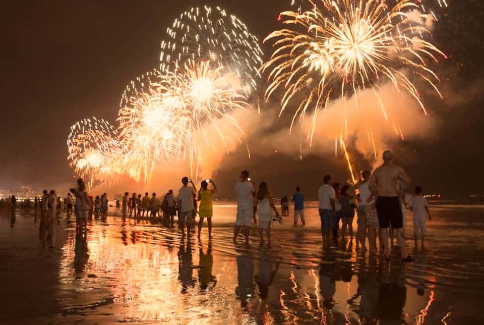 - Guarujá (SP) Queima de fogos de 20 minutos nas praias de Pitangueiras e Astúrias. Seis palcos com shows gratuitos, atividades esportivas e festas privadas como Réveillon Guarujá (com Kevin O Chris).
