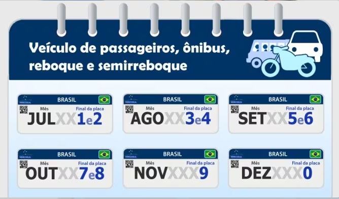 O calendário oficial de 2026 (de julho a dezembro) segue o final da placa, mas a liberação antecipada elimina a obrigatoriedade de esperar a data específica.
